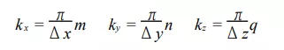 式中, m、n、q 為正整數(shù); 而波矢 k 的三個分量為
